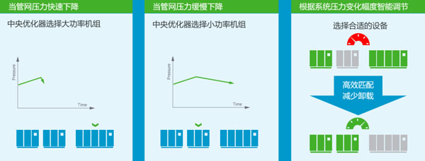 像華星光電這樣一個(gè)現(xiàn)場(chǎng)有著如此多的離心機(jī)的客戶,又有一定放空,完全可通過降低原先滿負(fù)載機(jī)組的IGV(進(jìn)氣導(dǎo)葉)開度,降低機(jī)組電流,同時(shí)減少原先放空機(jī)組的BOV(放空閥)的打開,消除放空。