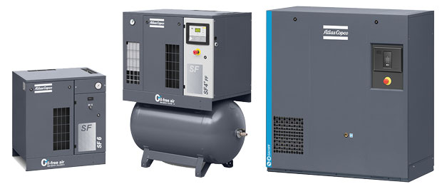 阿特拉斯·科普柯公司的GA系列水冷和風冷單級螺桿空壓機采用潤滑油作為冷卻與壓縮輔助工質,產品機型有60多款,電機功率為5.5至250kW;產氣量為0.8~42.96m³/min;最大工作壓力為7.5bar、10bar與13bar。不對稱轉子,但壓縮特別有效。高效的油氣分離系統確保了噴入的油幾乎全部得以回收,產出的壓縮空氣每立方米含油量低于5毫克,超過了PNEUROP歐洲氣動技術推薦標準6611中的相應質量等級4的規定數據。單級、風冷、具有高效油氣分離系統,油冷卻器和空氣冷卻器配有脫水器與自動回水裝置,產氣量為4.8m³/min,GA 系列螺桿空壓機能夠全自動調節系統按“滿載——空載——停機”原則工作,即使在用氣量波動頻繁、強烈時,也能提供特別有利的功率消耗與產氣量之比。