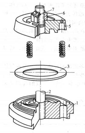 1、環狀閥如圖所示為環狀閥的結構,它由閥座1、連接螺栓 2、閥片3、彈簧4、升程限制器5、螺母6 等零件組成。閥座呈圓盤形,上面有幾個同心的環狀通道,供氣體通過,各環之間用筋連接。